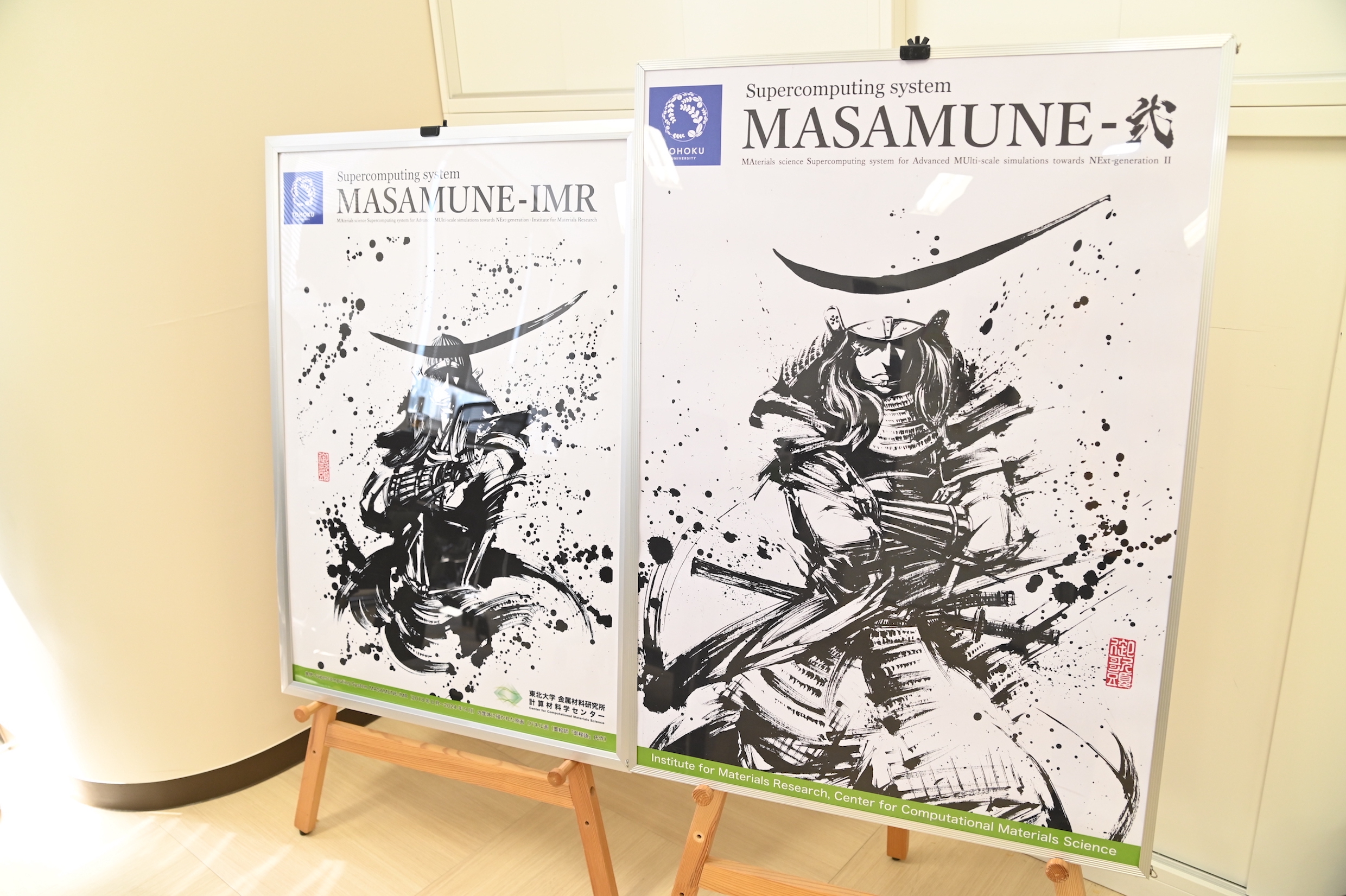 スーパーコンピュータの筐体パネルには、墨絵師の御歌頭氏によるダイナミックな絵が描かれている。前システム「MASAMUNE-IMR」では仙台藩を開き良い国を作ろうと思案する政宗公の姿が描かれていたのに対し、新システム「MASAMUNE-弐」では構築した考えを実行するという強い意志で前を見据える政宗公の姿が表現されているという。