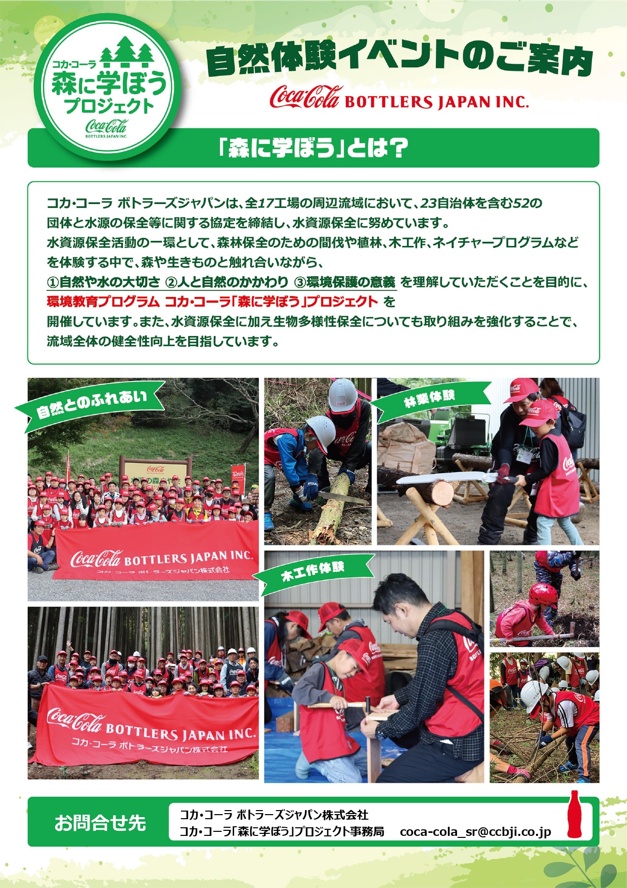水資源保全活動の一環として、森林保全のための間伐や植林、木工作、ネイチャープログラムなどを体験する中で、森や生きものと触れ合いながら、「自然や水の大切さ」「人と自然のかかわり」「環境保護の意義」を理解してもらうことを目的に、環境教育プログラム コカ・コーラ「森に学ぼう」プロジェクトを開催している。