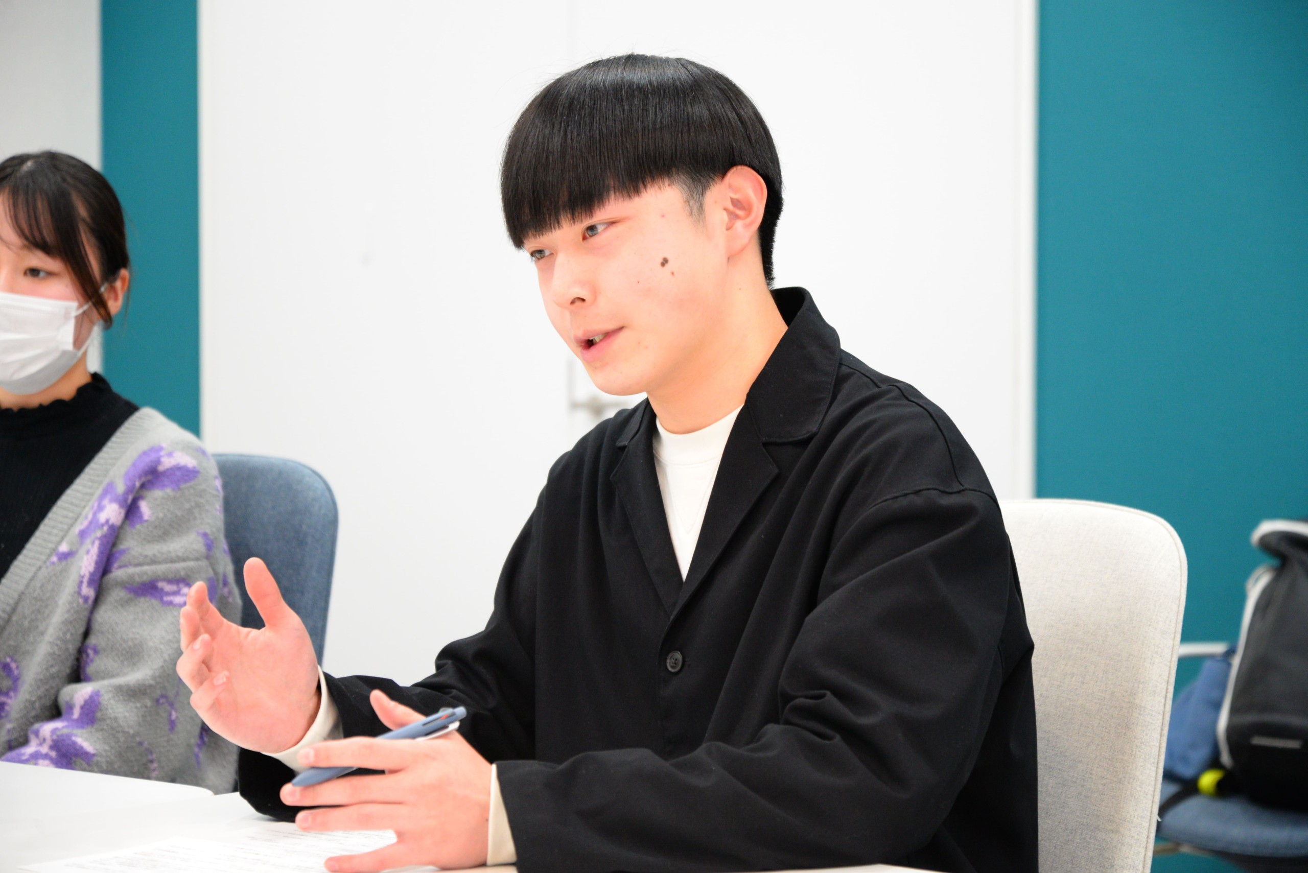 「男性も性や健康の知識を持つべきだし、将来のパートナー理解のためにもなることなので多くの人に広めたいです」「ヘルスケアに関する性や健康への正しい知識を特に若者(思春期〜青年期)へ伝えていきたい。世の中で出回ってる健康への誤解が減少していくことを期待し活動したい。将来のパートナー理解のためにも男女関係なく多くの方々に広めていきたい」と話す看護学科2年松倉風雅さん。